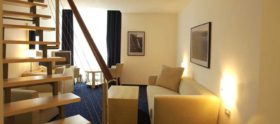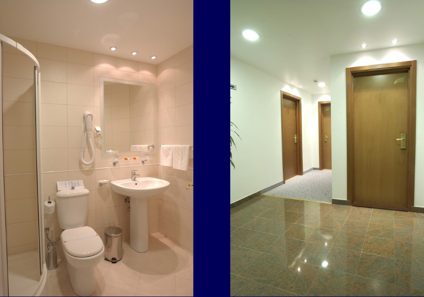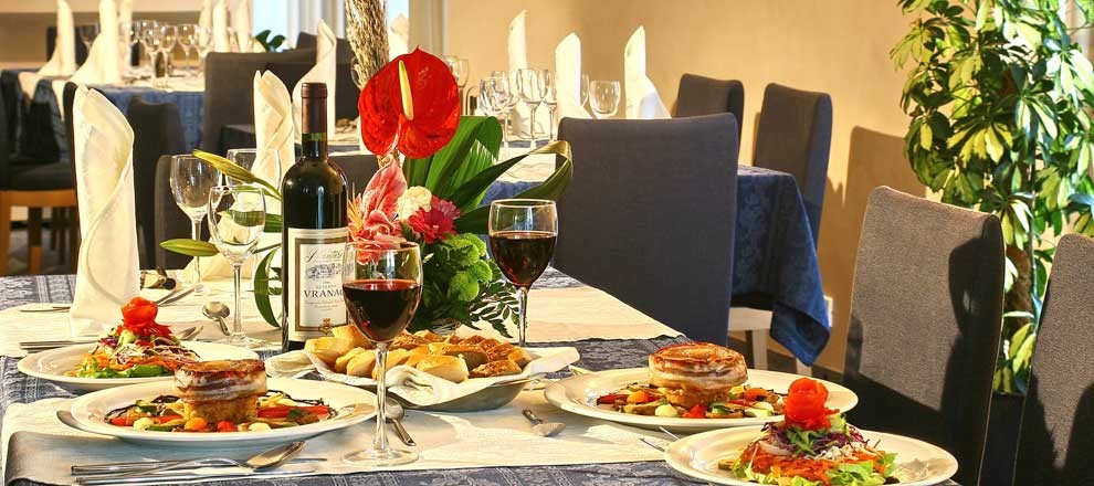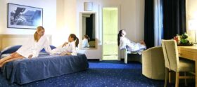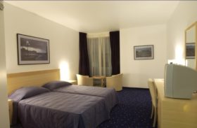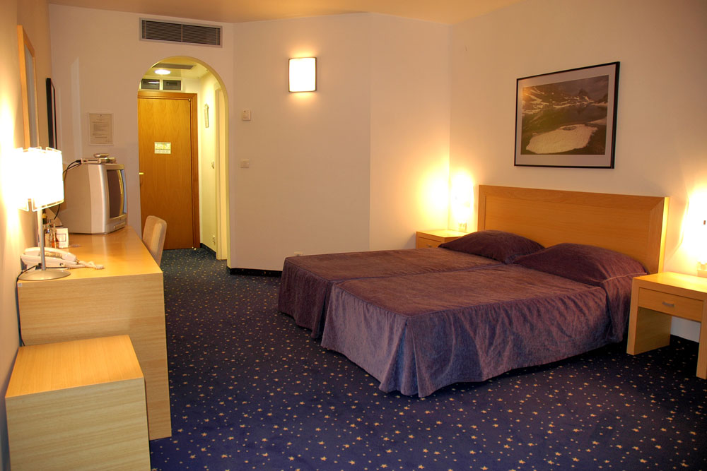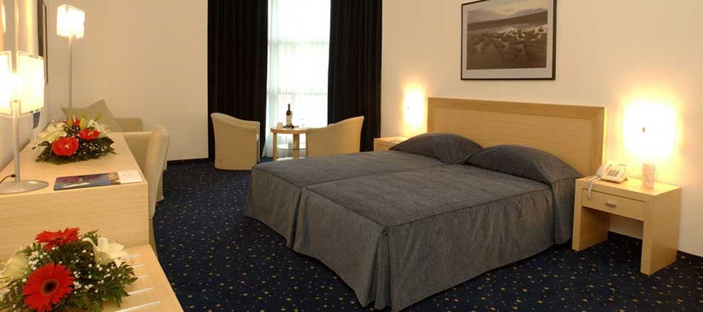 Smeštaj: Udobne klimatizovane sobe opremljene italijanskim nameštajem, kupatilom sa fenom, kablovskom TV, direktnom telefonskom linijom, internet vezom, mini barom i sefom pružaju gostima mogućnost udobnog i kvalitetnog odmora.