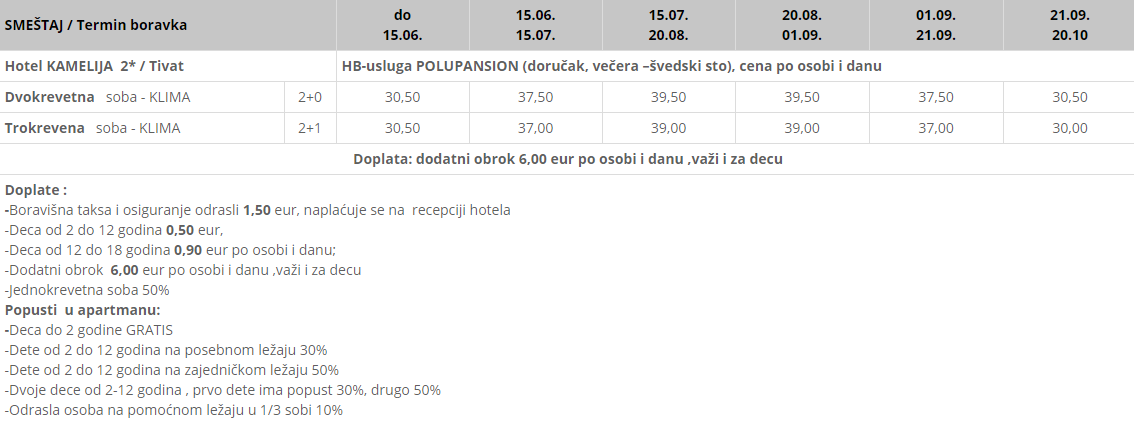 Hotel Kamelija 2* – Tivat – leto 2020.