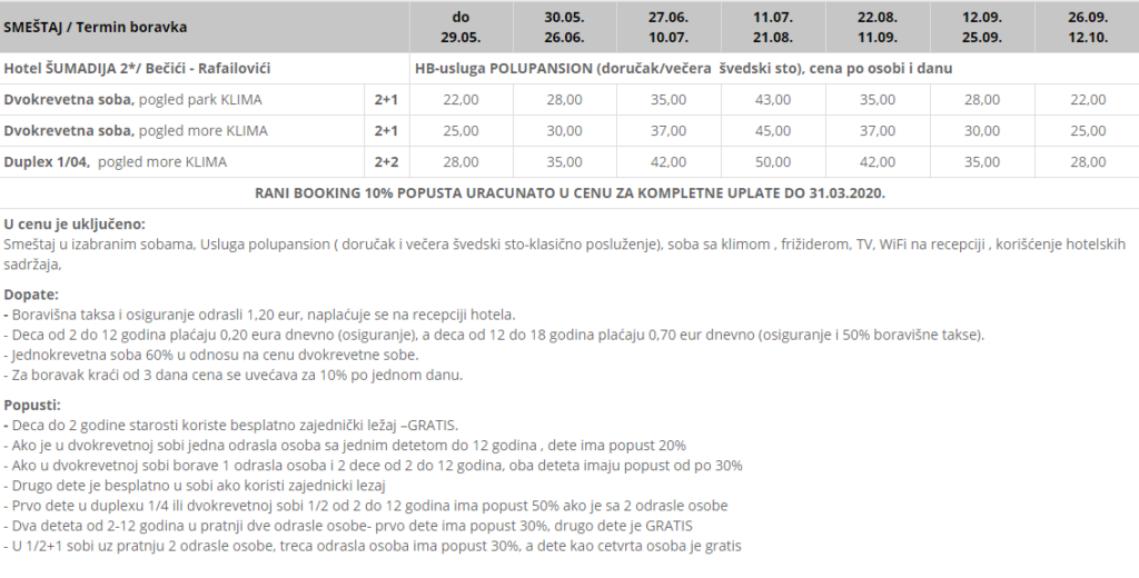 Hotel Šumadija 2* – Rafailovići – leto 2020.