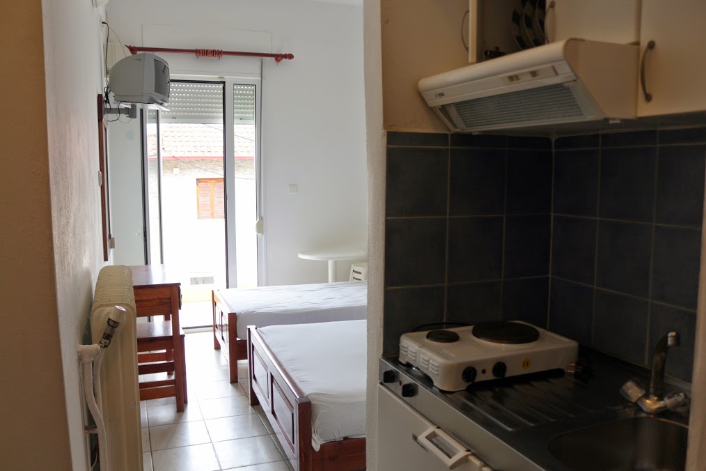 1/3 studio – u jednoj prostoriji čajna kuhinja i tri obična ležaja ili bračni ležaj i jedan običan ležaj,