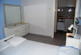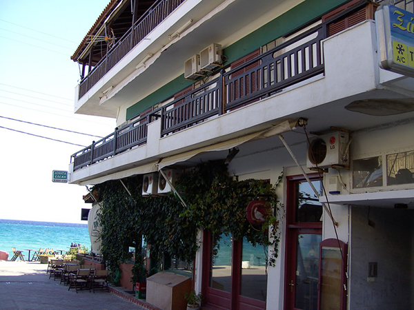 Vila Eleni Beach je smeštena na samoj plaži u centru Pefkohorija. Studiji i apartmani se nalaze na prvom spratu i svi imaju direktan ili bočni pogled na more. Apartman sa oznakom 1/2+2 sadrži spavaću sobu, u kojoj se nalazi francuski ležaj, dok se u u izdvojenom kuhinjskom delu nalazi sofa (dvosed) na rasklapanje. Apartman sa oznakom 1/3+1 sadrži dva standardna kreveta u spavaćoj sobi i jedan standardni i jedan pomoćni – fioka ležaj, gotovo standardnih dimenzija, u kuhinjskom delu. Svaka smeštajna jedinica poseduje osnovno opremljenu kuhinju: frižider, rešo, posuđe i escajg srazmerno broju ležajeva, kupatilo, terasu sa garniturom za sedenje TV, klima uređaj čije se korišćenje dodatno naplaćuje, dok je promena posteljine jedanput u toku boravka. Gostima ove vile je na raspolaganju WiFi internet iz kafića koji se nalazi u prizemlju vile.