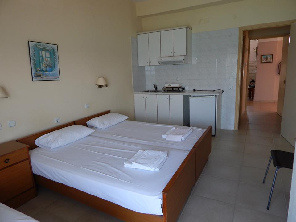 POSEIDONIO se nalazi na sjajnoj lokaciji, u centru Pefkohorija na samoj plaži, uz šetalište. Vila raspolaže dvokrevetnim, trokrevetnim studijima i četvorokrevetnim apartmanimа, koji se nalaze na prvom i drugom spratu. Svi studiji i apartmani imaju terasu sa pogledom na more (pun ili bočan). U svakom studiju/apartmanu se nalazi TV, klima, opremljena kuhinja i kupatilo. Gostima je u vili na raspolaganju besplatan internet. Korišćenje klima uređaja je uključeno u cenu tokom jula i avgusta, dok se u junu i septembru plaća 3 eur dnevno. Posteljina i peškiri se menjaju jednom u toku smene. U prizemlju vile nalazi se veliki, odlično snadbeveni super market.