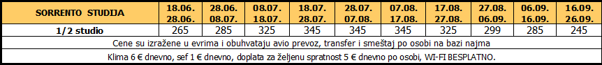 Cene su izražene u evrima po osobi za 10 noćenja za paket aranžman – avio prevoz + transfer + smeštaj